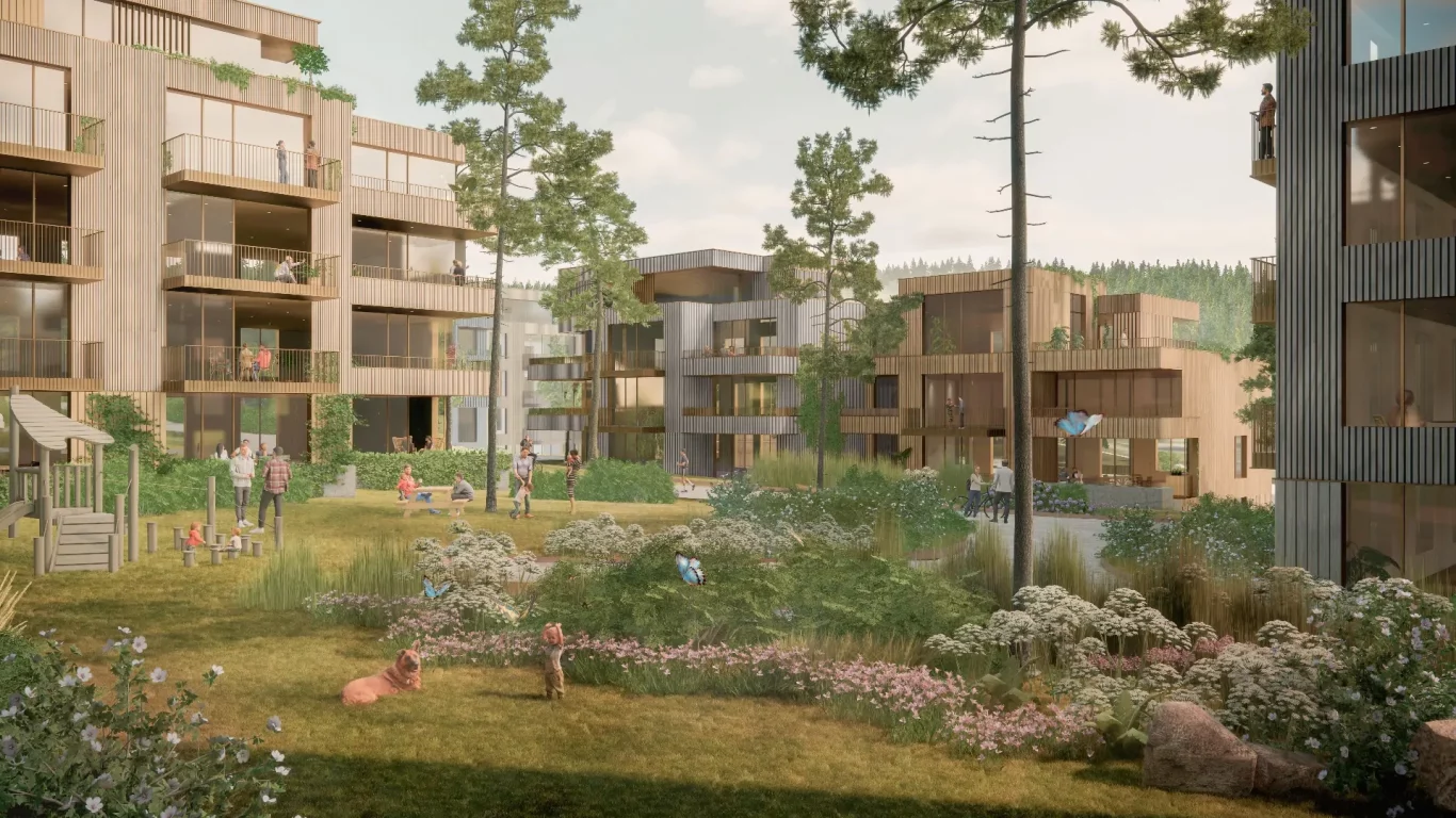 Prosjektet vil i stor grad preges av større enheter og rause grøntarealer. En andel rekkehus vil i tillegg gi en god overgang til småhusområdet og nabobebyggelsen.