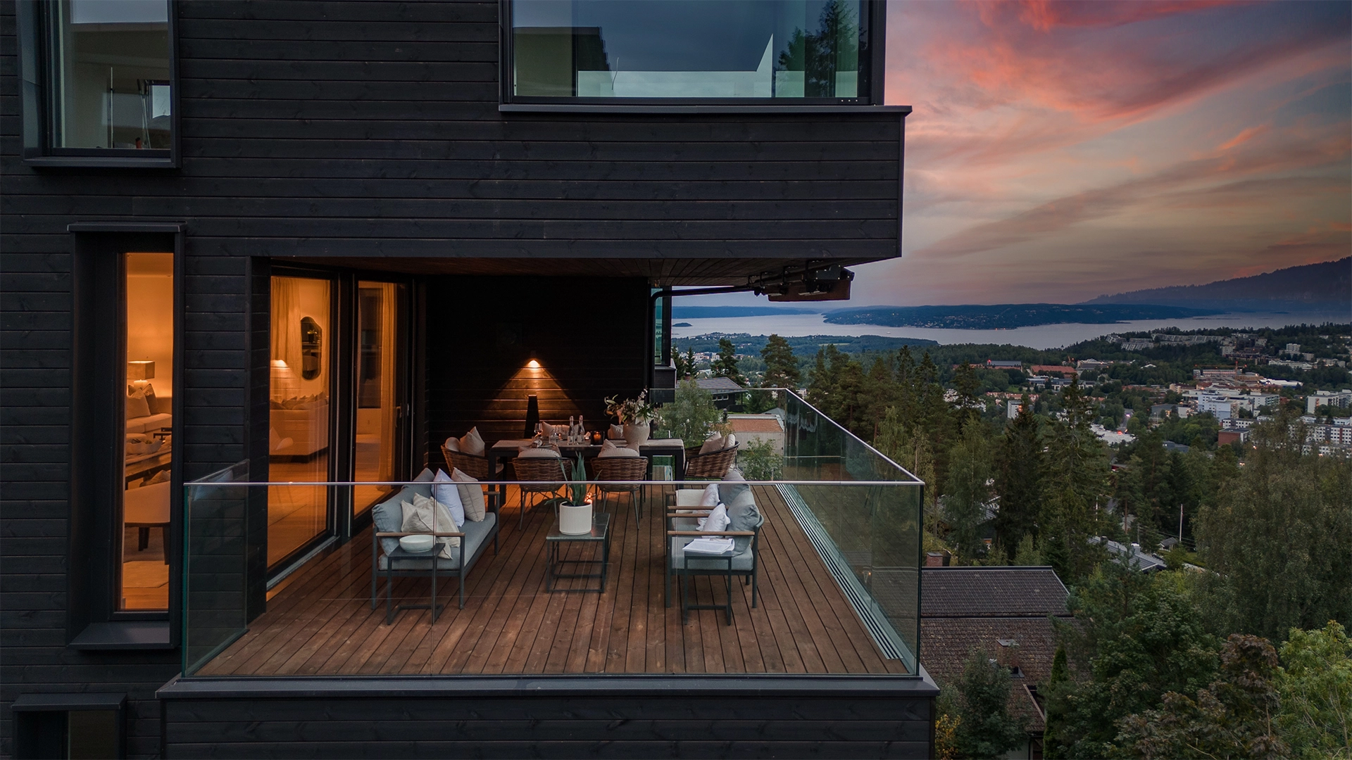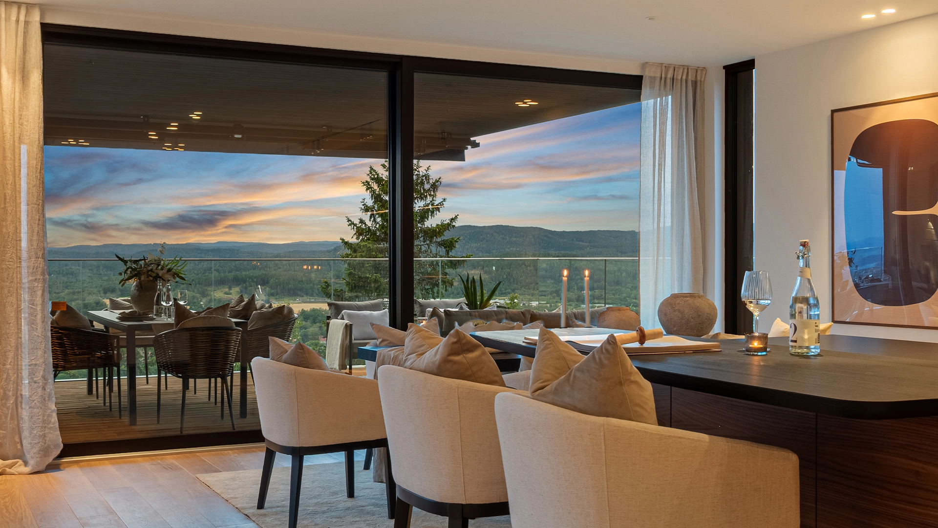 Alle leilighetene får vestvendte fasader med vidstrakt utsyn, der utsikten strekker seg fra Oslofjorden i syd til Bærumsmarka og Krokskogen i vest. Samtidig sørger den helt spesielle beliggenheten og arkitekturen for at man får fabelaktig utsyn, men fremdeles skjermet beliggenhet. Både gjennom vinduene og fra egen terrasse. Det er kort vei til Nordmarka, og bare noen få minutters gange til Holmenkollen stasjon.
